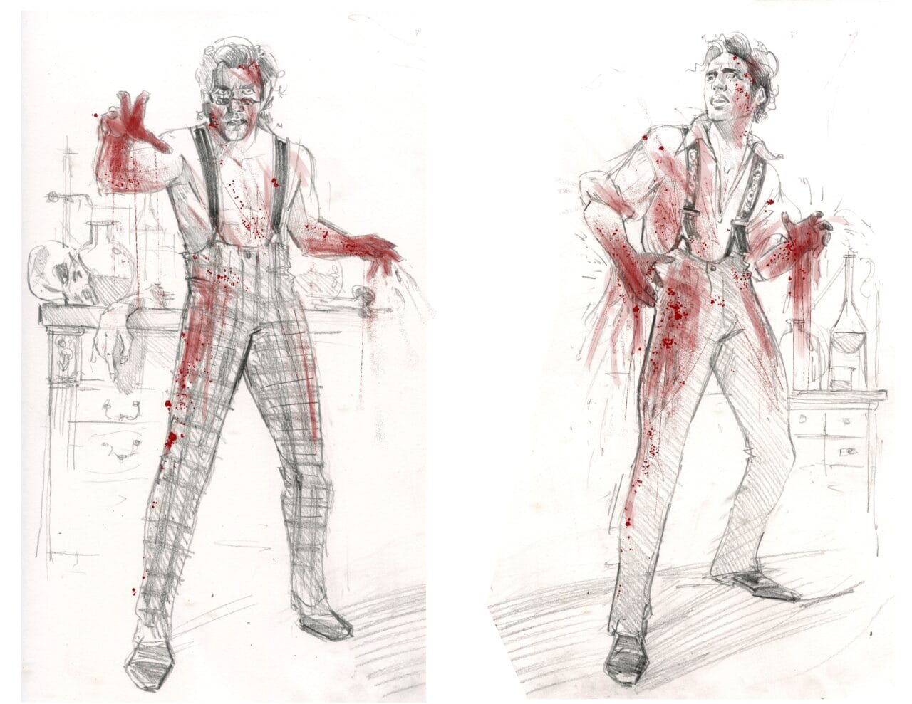 El vestido de novia de Elizabeth fue una de las primeras piezas que Hawley diseñó. “Sabíamos que ese vestido unía toda la historia”, explica. Inspirado en la estética victoriana y los ecos anatómicos del monstruo, el traje combina romanticismo y horror con precisión quirúrgica.